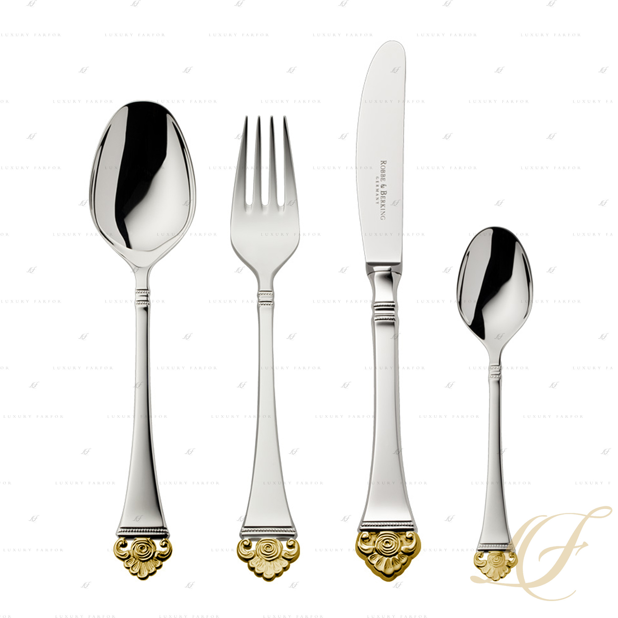 Роббе & Беркинг, Розенмустер 150г. массивное Посеребрение + узорная позолота