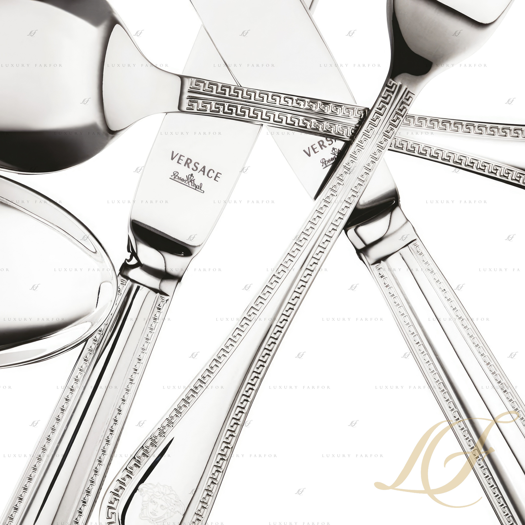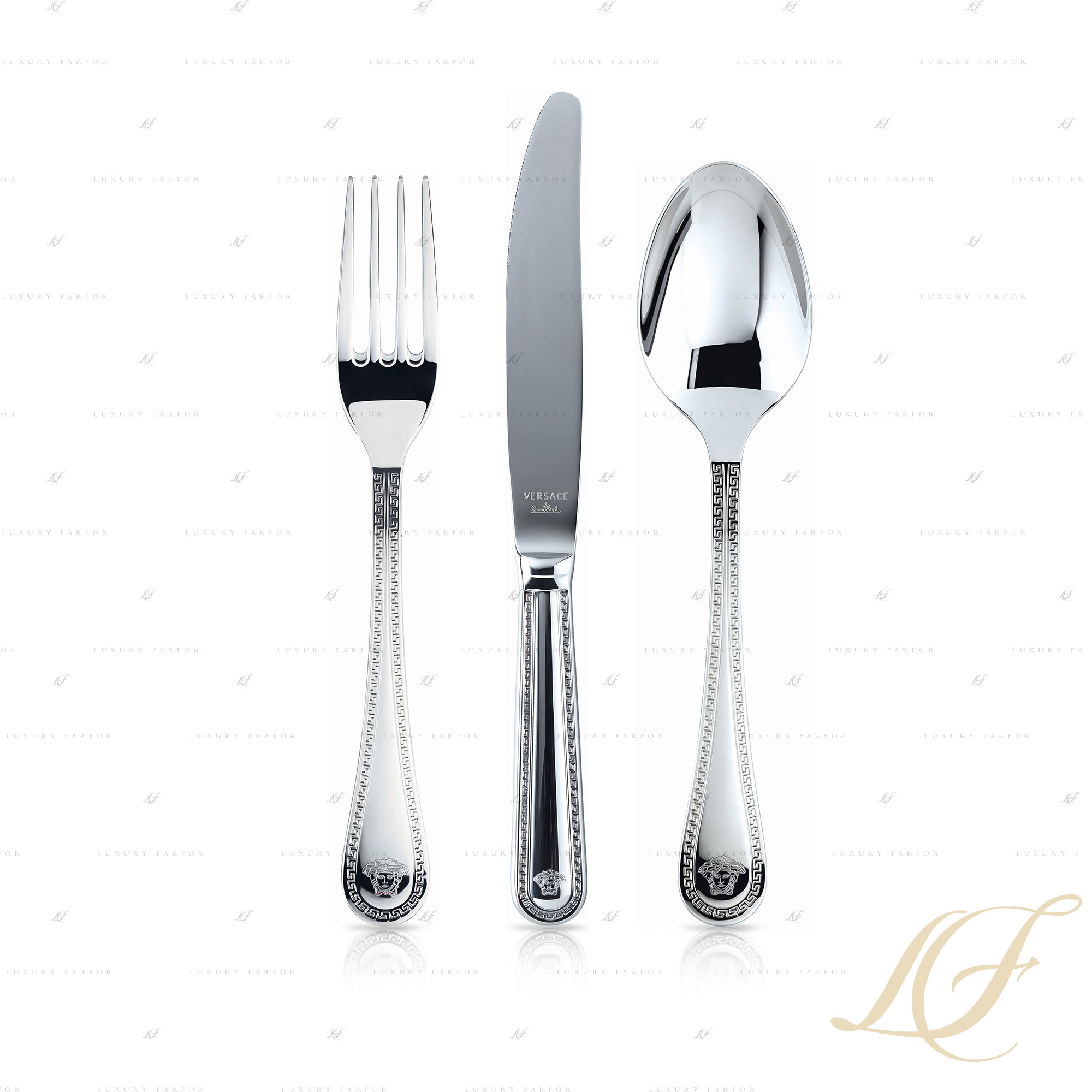 Серия элегантных столовых приборов Greca, выполненная из высококачественной нержавеющей стали, – настоящая жемчужина в каталоге Rosenthal Versace. Приборы имеют классическую форму с аккуратной каплевидной рукоятью, что позволяет легко сочетать их практически с любой посудой. По краю предметов расположена декоративная гравировка в виде традиционного греческого узора, а на самом краю каждого изделия можно увидеть небольшое изображение знаменитой медузы, чей образ давно ассоциируется исключительно со знаменитым модным домом Версаче. Столовые приборы можно приобрести как поштучно, так и в наборе из 24 предметов.