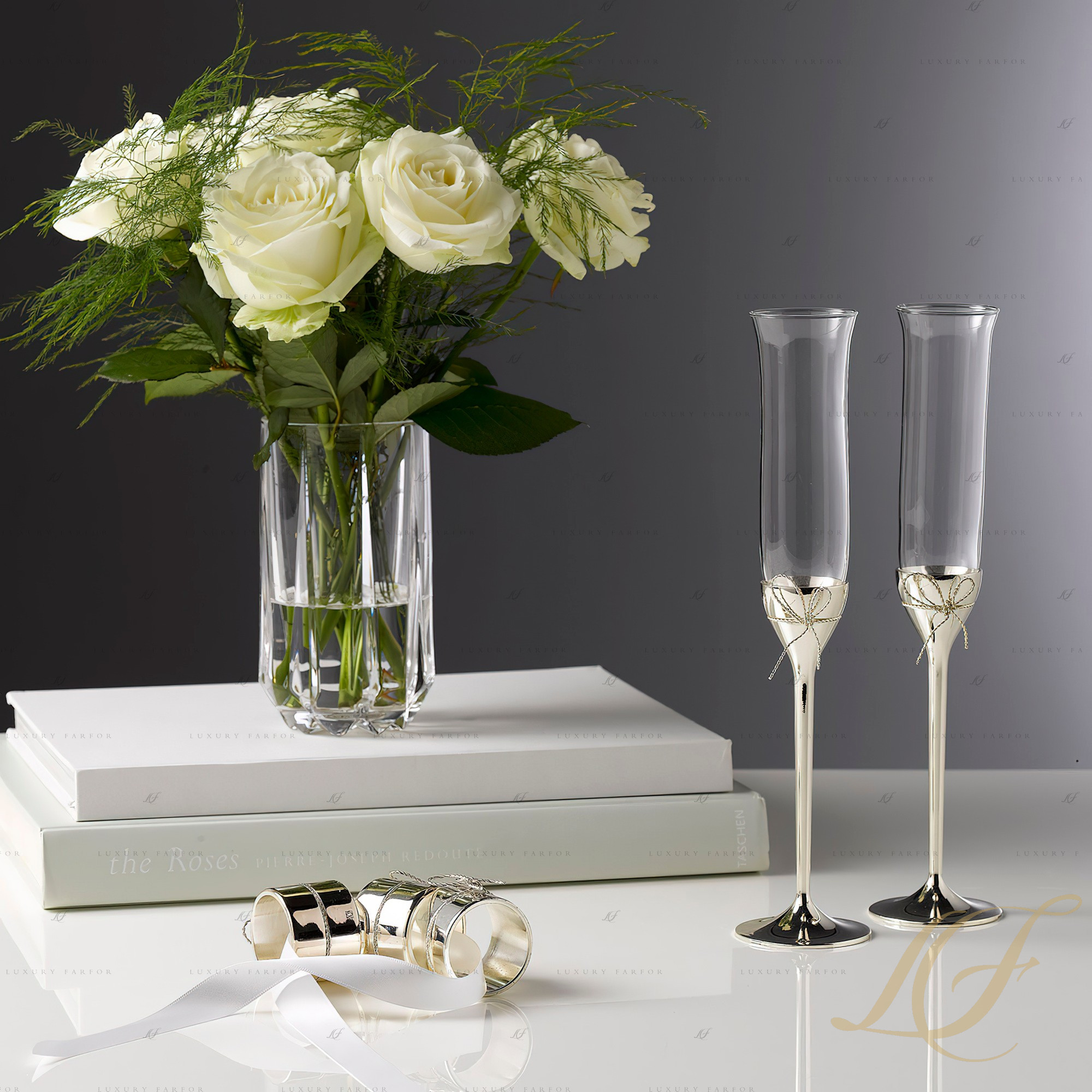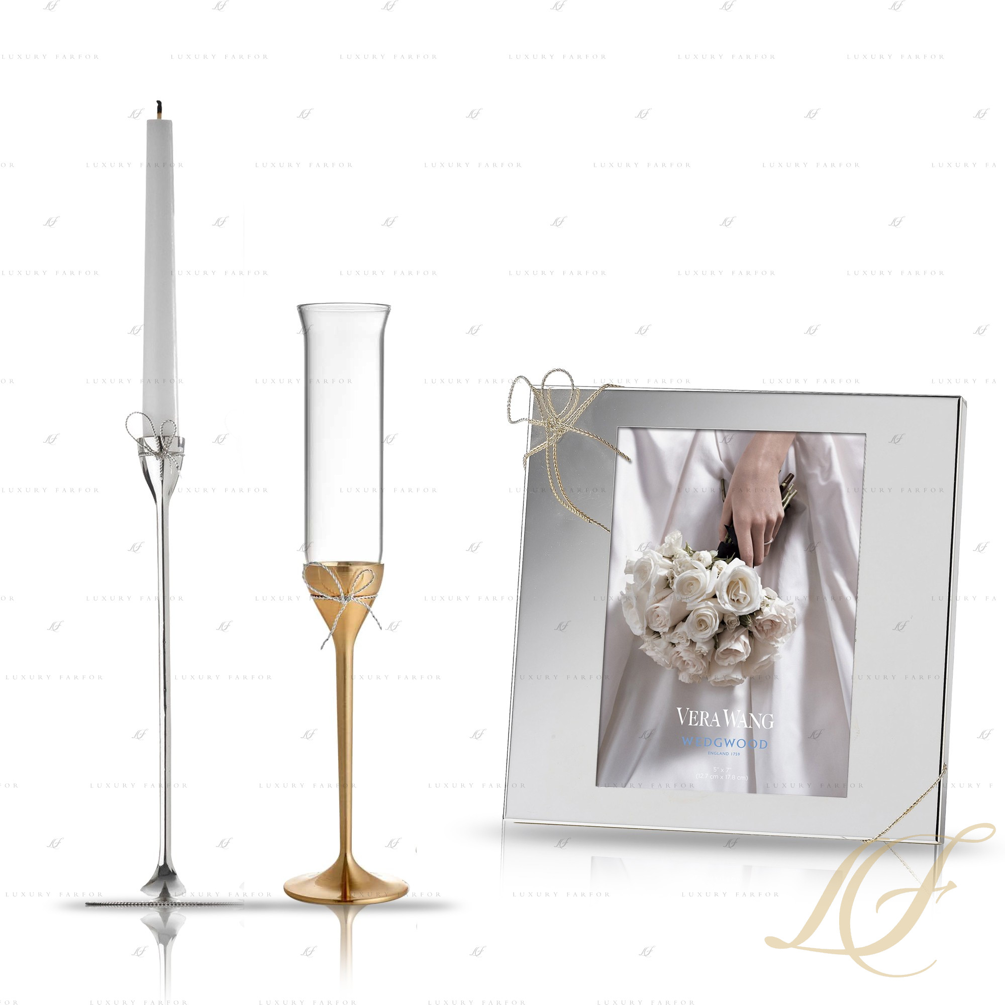 Аксессуары из коллекции Vera Wang - Love Knots – это воплощение современной романтики. В серию Love Knots, созданную компанией Wedgwood совместно с Верой Вонг, вошли столовые приборы для десертов, подсвечники, карманное зеркальце, высокие бокалы для шампанского и другие аксессуары. Сочетание серебра, позолоты, а также декоративного элемента в виде бантика, делает эту коллекцию по-особенному праздничной. Эти невероятно эстетичные подарки просто созданы радовать молодоженов в день свадьбы, а также дарить приятные эмоции в другие праздники, будь то День рождения, Рождество или Новый год.