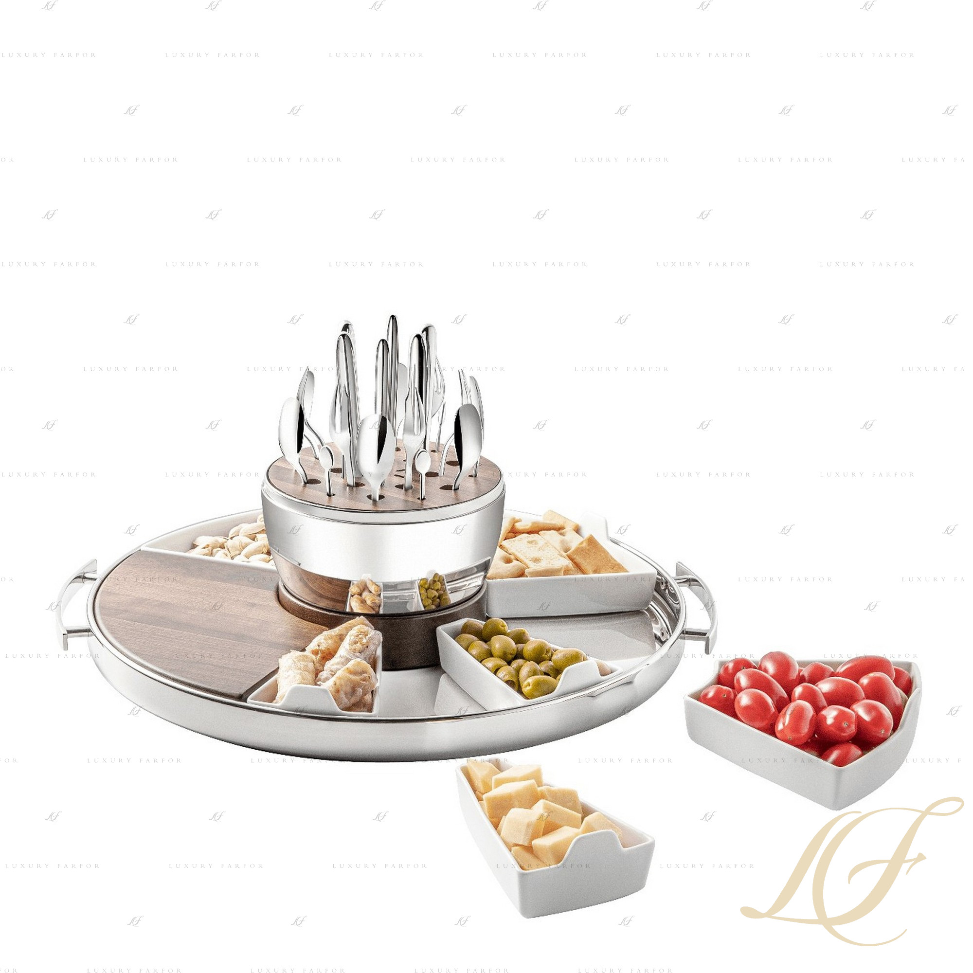 Материал Ореховое дерево, Сталь, Фарфор