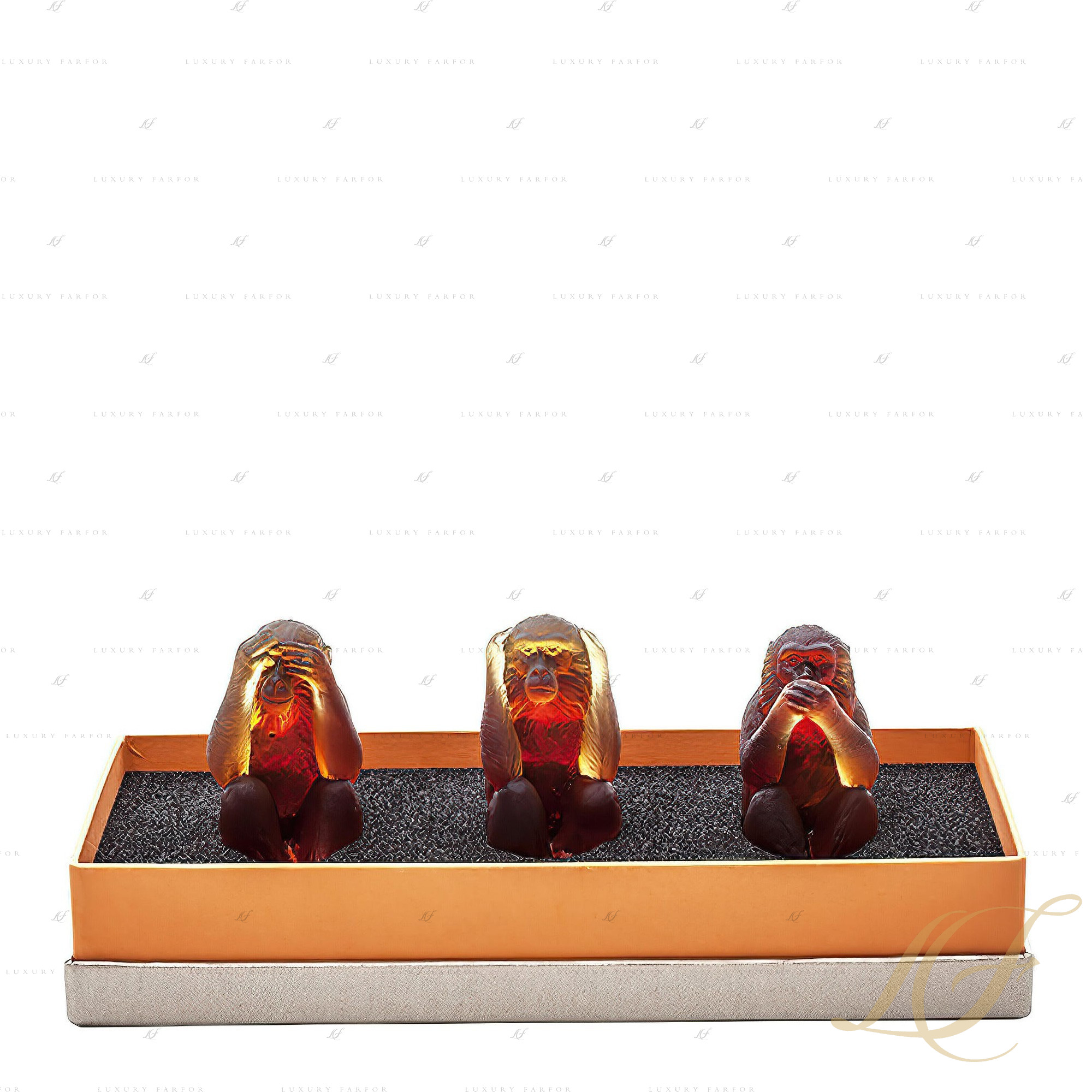 Статуэтка "3 обезьяны - янтарный, коричневый" 7,5см