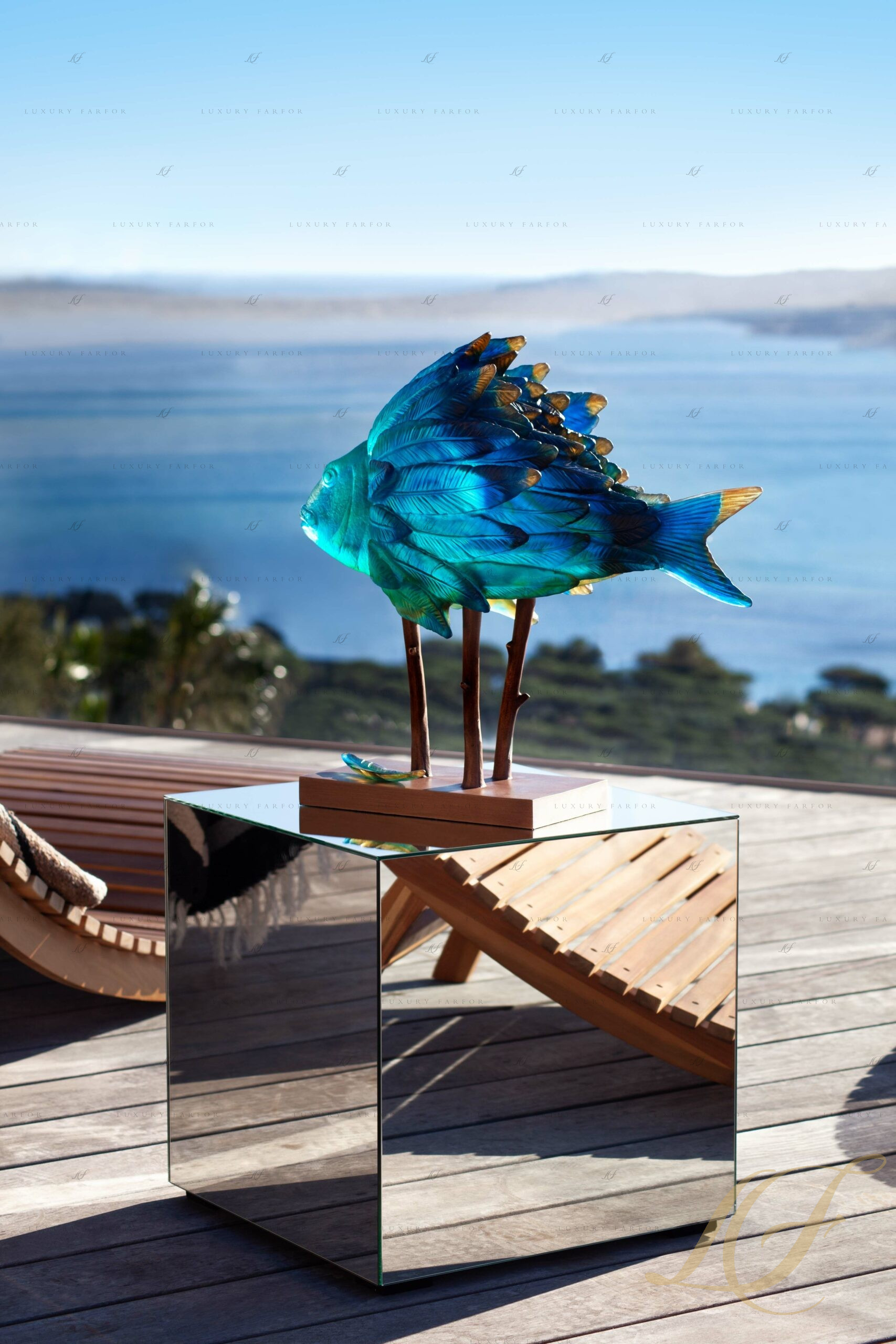 Статуэтка "Рыба - синий, янтарный" 50см