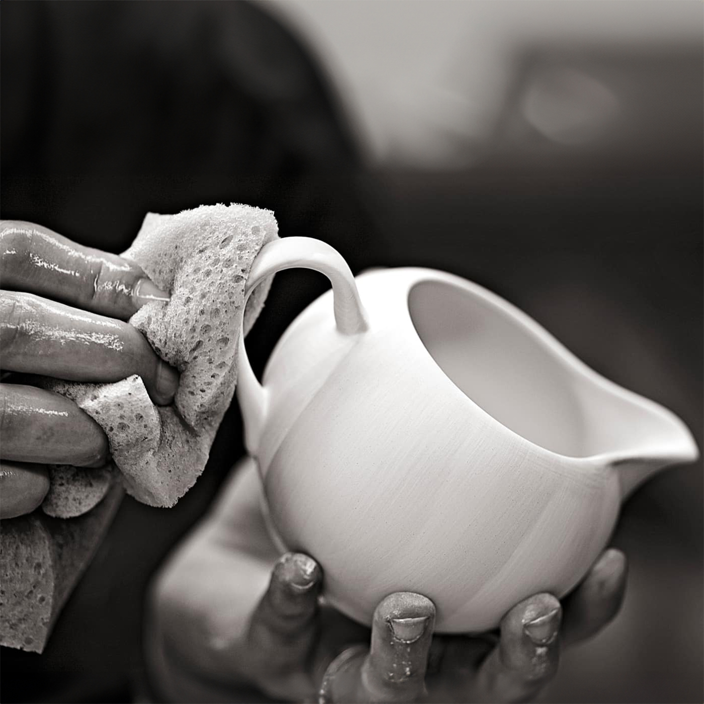 Каждый предмет отливается вручную в гипсовую форму, вместо привычной сегодня автоматической штапмовки. Благодаря формовке на токарном станке, фарфор приобретает дополнительную прочность. Далее, мастер вручную устраняет все неровности. В завершение, крепятся дополнительные детали – ручки чашек, носики чайников и т.д. Предмет проходит две-три стадии обжига.