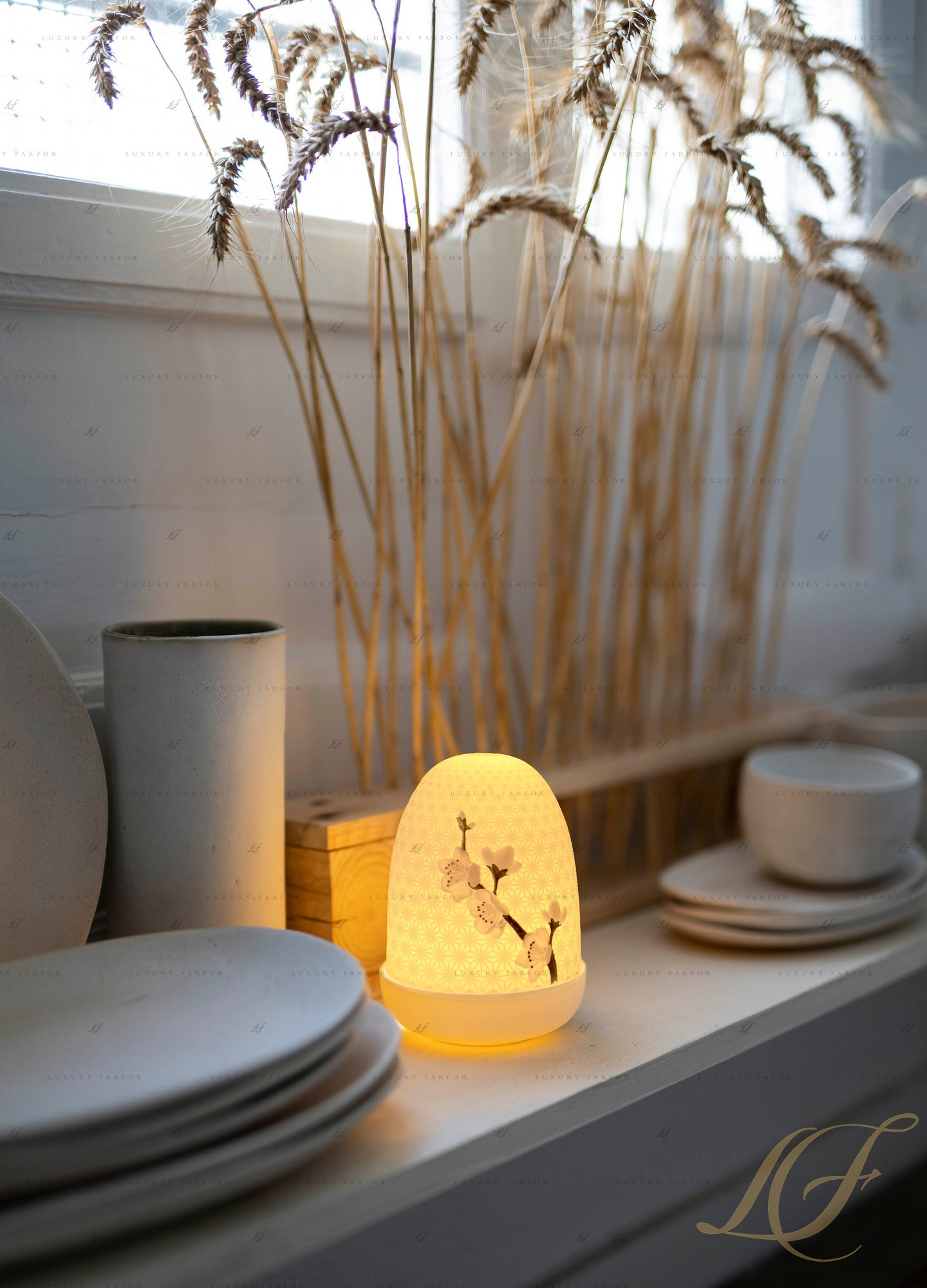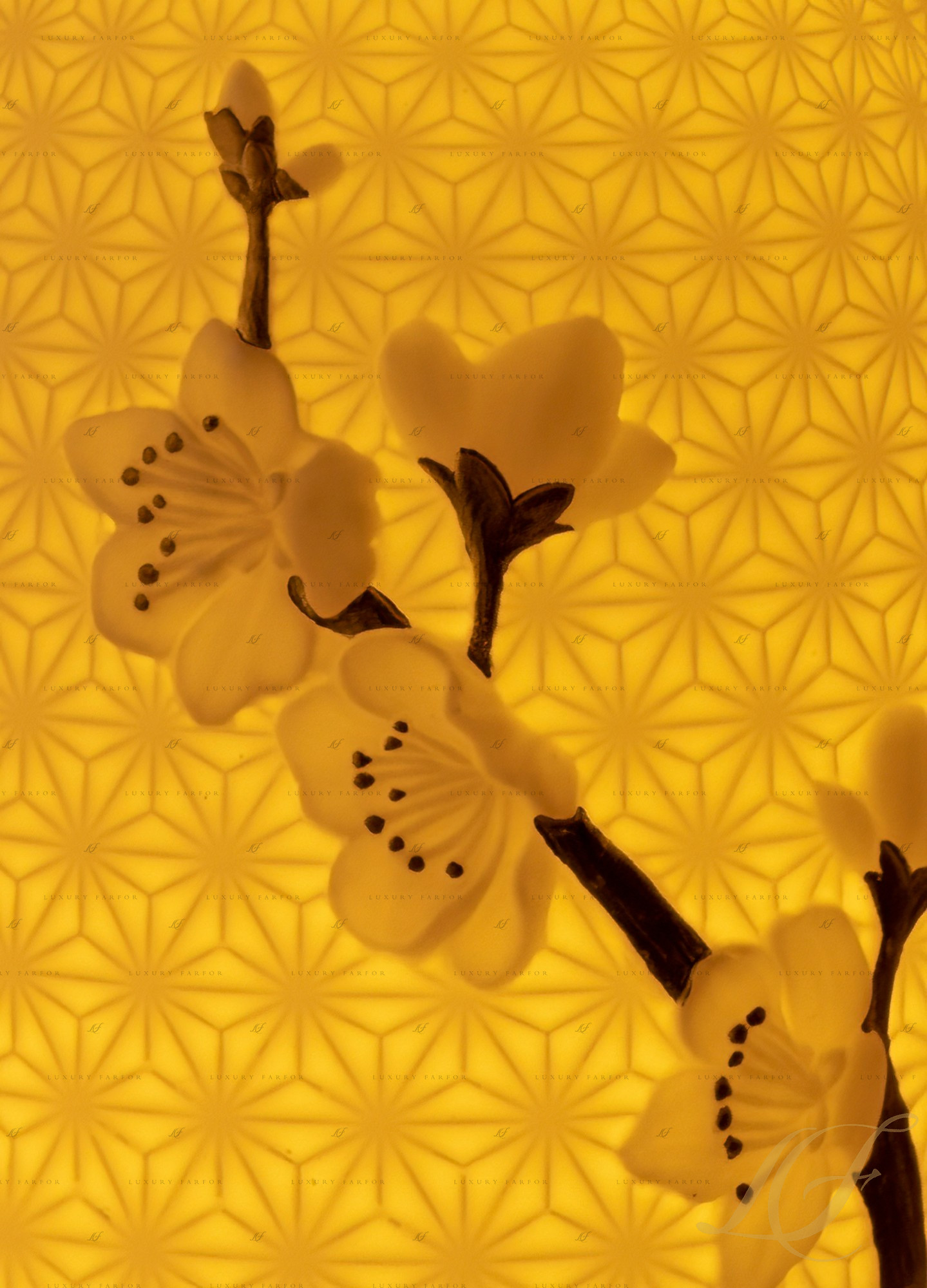Лампа настольная "Вишневые цветы (белый / золотой)" 15 х 11см