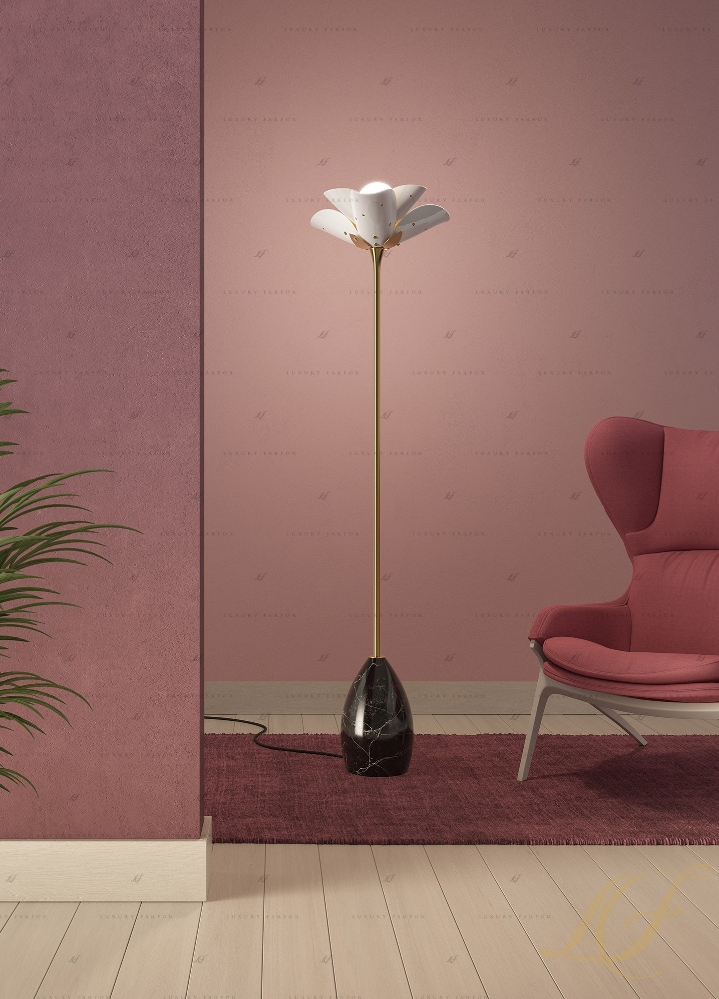 Торшер, напольный светильник "Цветение (Белый / золотой)" 170 х 47см