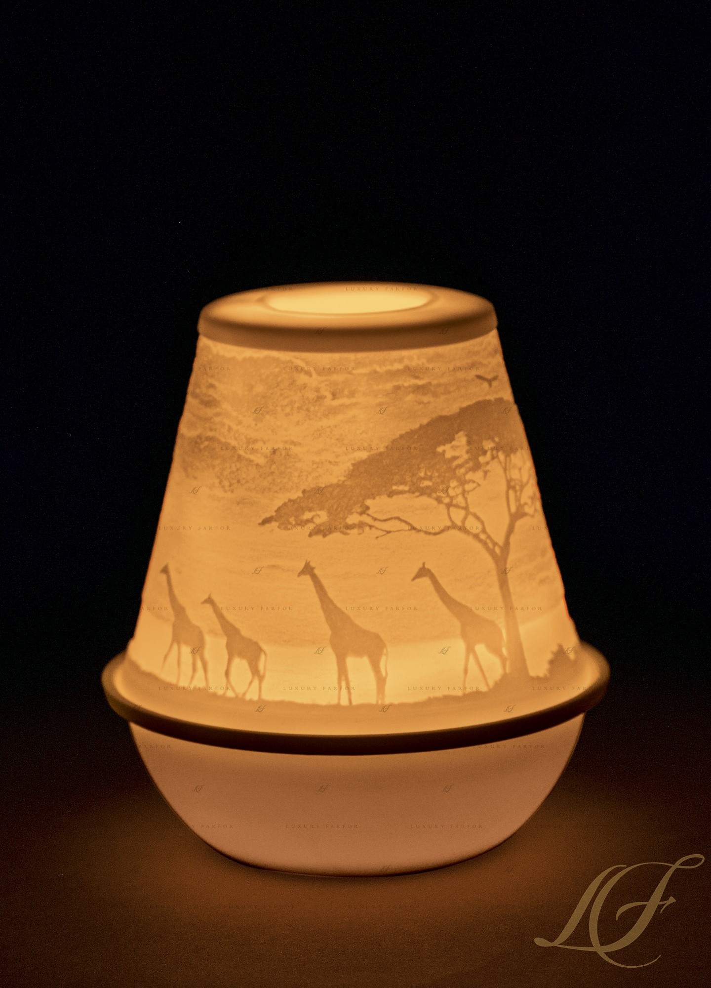 Подсвечник-литофан с перезаряжаемой светодиодной лампой "Африканская саванна" 11 х 10см
