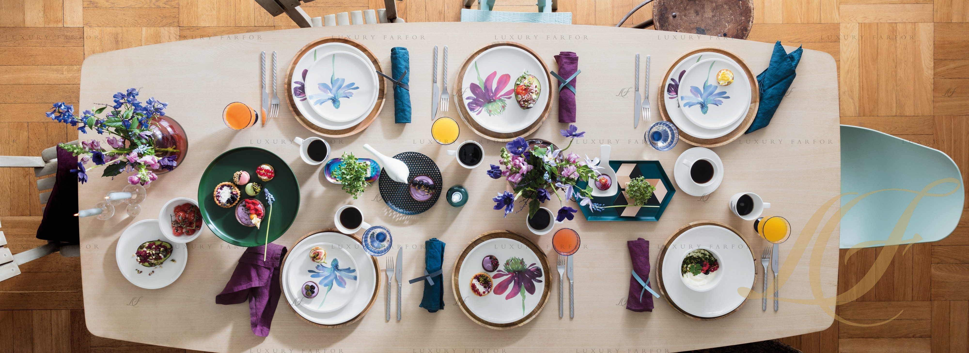 Artesano Flower Art – коллекция восхитительной фарфоровой посуды, украшенной роскошной ручной росписью. Сервиз, разработанный талантливыми художниками-керамистами немецкой компании «Виллерой и Бох», придется по вкусу любителям ярких сервировок. Тарелки, чаши, кружки и другие предметы изготовлены из благородного костяного фарфора и дополнены акварельными растительными мотивами. Крупные бутоны фантазийных цветов расположились на белоснежном фоне, приковывая к себе все внимание. Каждый предмет в этой линейке уникален и декорирован цветком, не похожим на остальные.